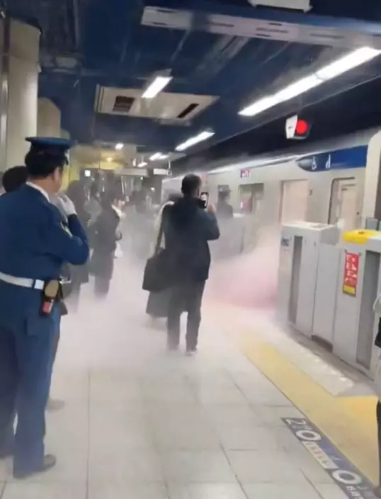 日本警視廳表示,事發時正值上班繁忙時段,車廂內擠滿通勤人潮。有目擊者憶述,當時突然聽到一聲巨響,回頭便看見如同火柱般的火焰直衝而上,幾乎燒至頭部高度。由於列車剛好進站,乘客隨即在驚叫聲中爭相逃離車廂。畫面可見,濃煙不斷由車廂湧出至月台,其餘乘客也慌忙走避,氣氛一度十分緊張。