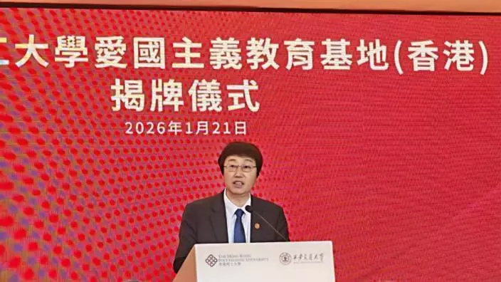 繼去年底在西安建立「愛國主義教育基地」(基地),香港理工大學(理大)日前與西安交通大學(西安交大)在理大校園舉行「理大愛國主義教育基地(香港)」揭牌儀式,成為本港首間同時在香港及內地設立有關基地的大學。理大表示,將加強與內地高校及機構合作,透過不同形式的教學活動,培育愛國愛港人才,並將於今年5月組織首批學生代表團赴西安交流。