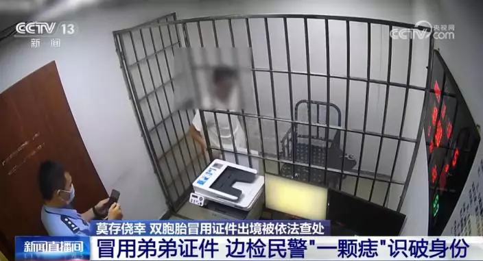 雙胞胎自恃外貌相似冒用證件出境,最終仍被邊檢從細節識破,闖關失敗。影片截圖