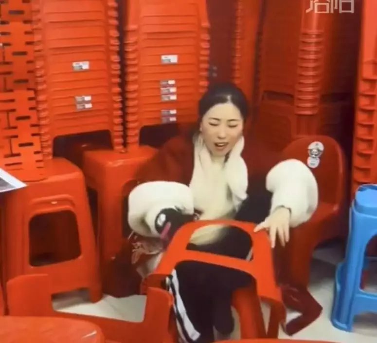 站膠凳上測試承重能力 女主播踩裂凳子跌倒