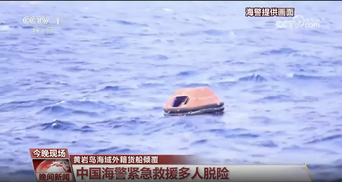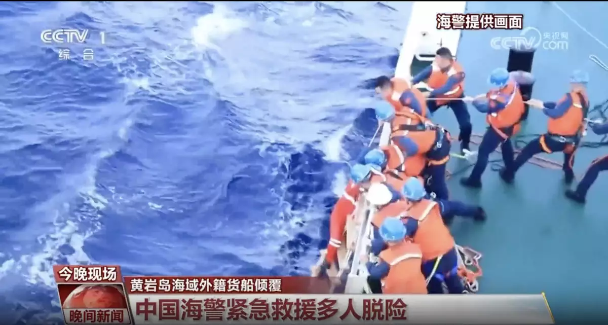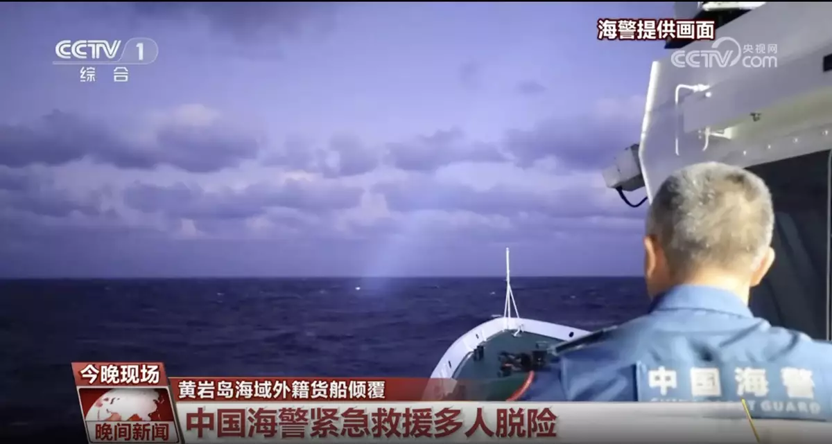 中國海警凌晨接獲一艘外籍貨輪,在中國黃岩島西北55海里翻側,船上共有21名菲律賓籍船員。