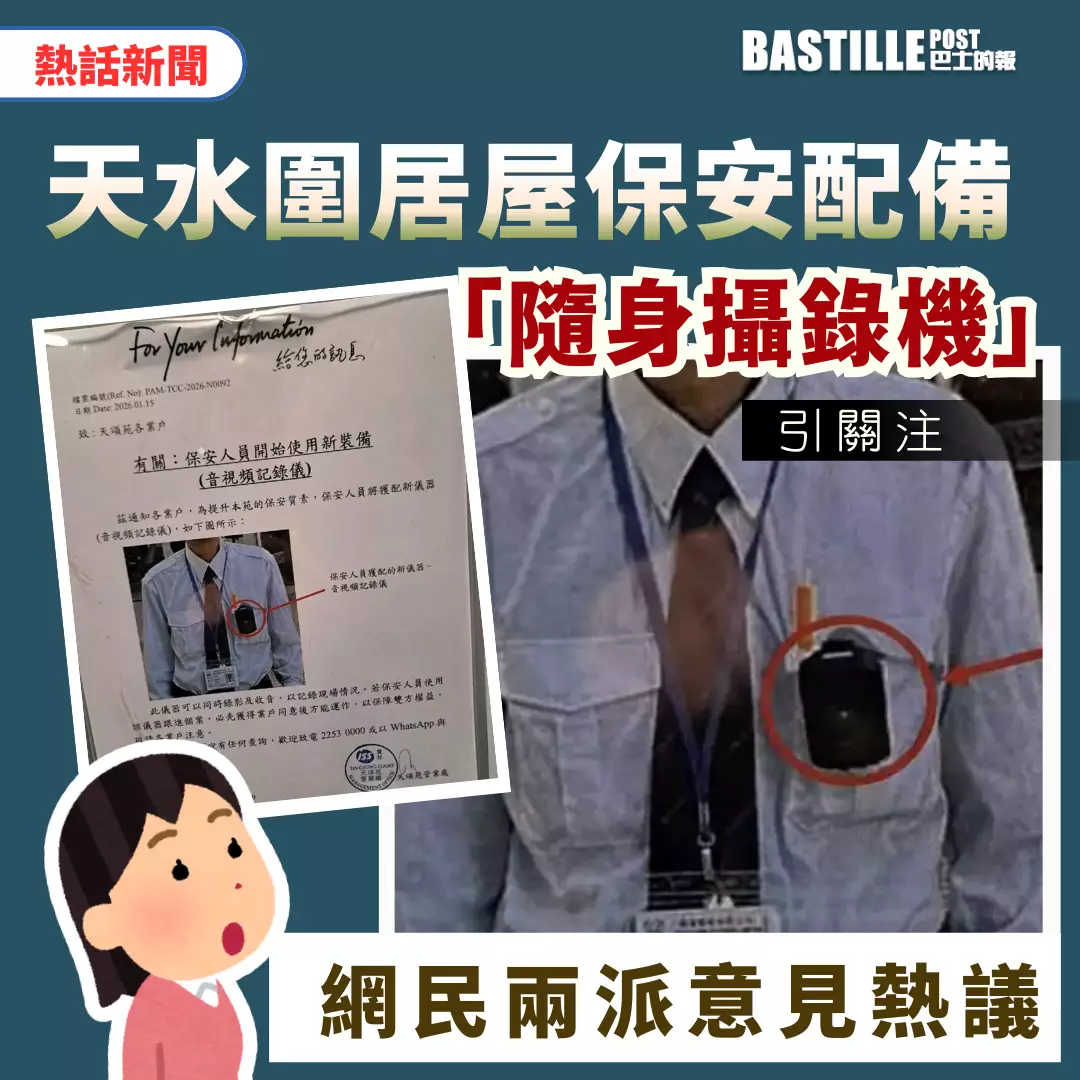 天水圍居屋天頌苑近日推出新措施,為保安員配備類似警方使用的「隨身攝錄機」,隨即引起網上熱議。有人認為合理,亦有人質疑會否侵犯私隱?