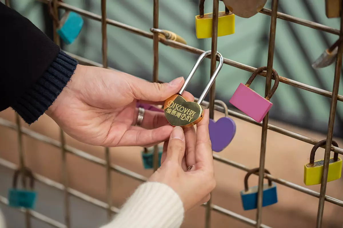 情侶可換領心鎖禮遇,於愉景北心鎖長廊扣上愛的承諾。