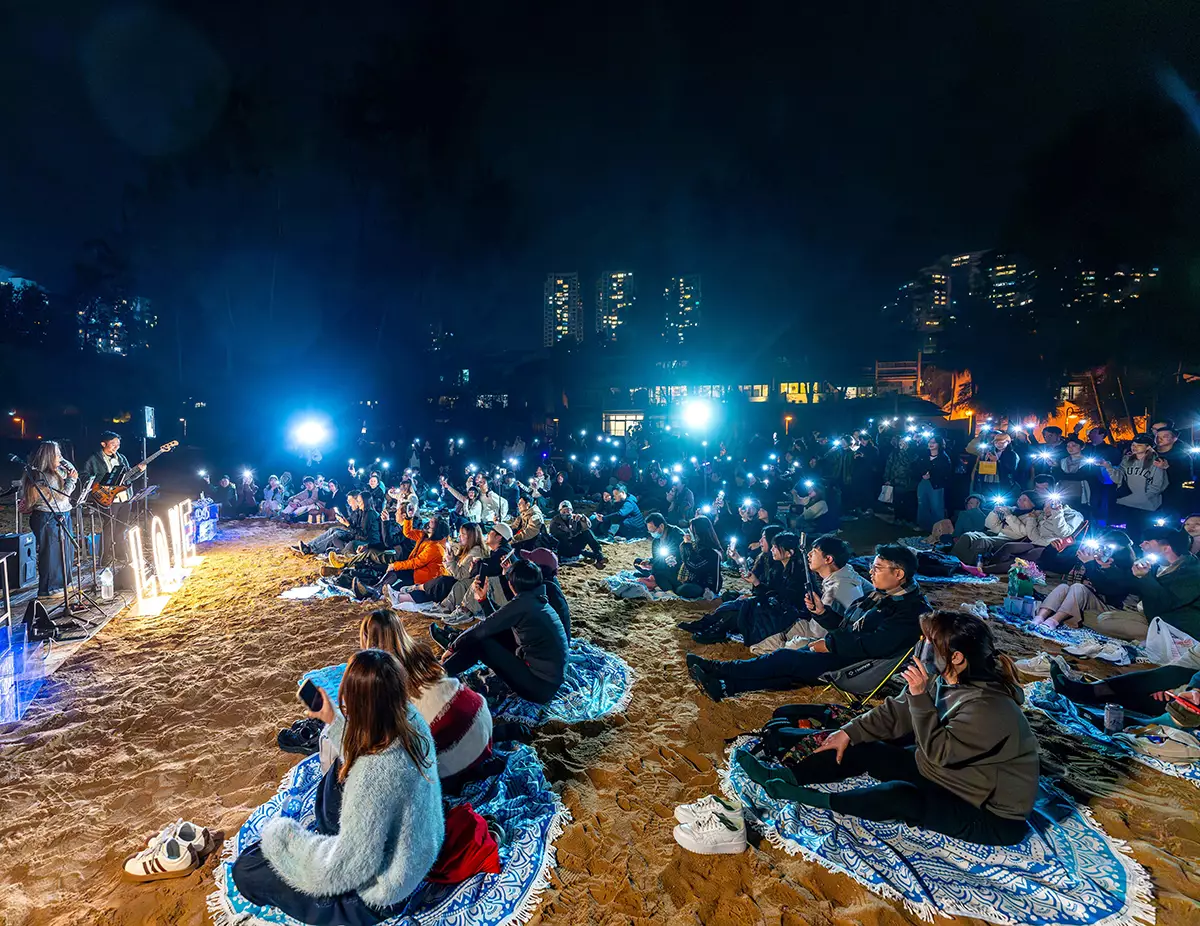 2月14日傍晚,大白灣沙灘將亮起超過7,000 粒 LED 燭光,砌成約8米的巨型心形及十多組精緻心形圖案,成為全港最具規模的戶外燭光浪漫沙灘打卡位,並可欣賞本地人氣 Busking 樂隊 The Flame 現場獻唱。當晚 9:00 更可於沙灘上、D'Deck 海濱長廊、或愉景北心鎖長廊欣賞到附近主題公園的無人機匯演,誠是不容錯過!