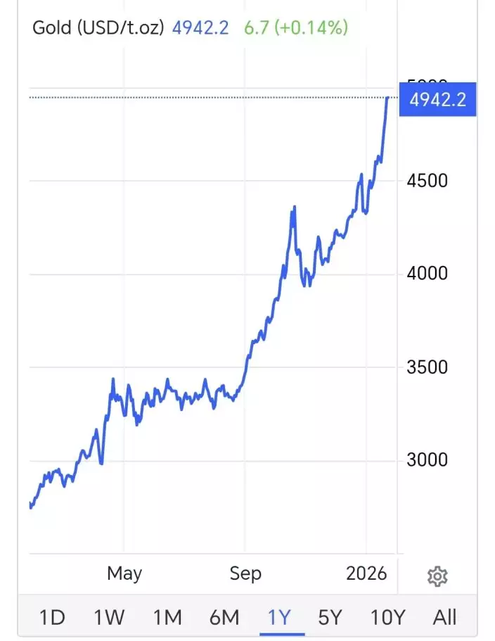 黃金雖好,但升得太多,由去年頭的2670美元,升至現價的4950美元,已升了72%,若再升到高盛新目標價5400美元,就升了100%以上。資金會外溢到其他地方,中國股票可以睇好,因為明顯比美股便宜。