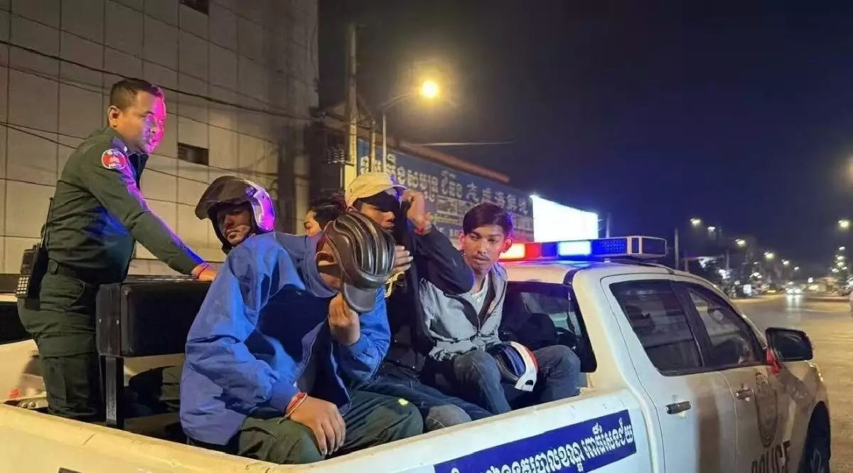 柬埔寨4名男子在街頭冒充警員非法截查車輛行騙,結果誤打誤撞竟攔截到正牌警局副局長,最終全數遭拘捕。