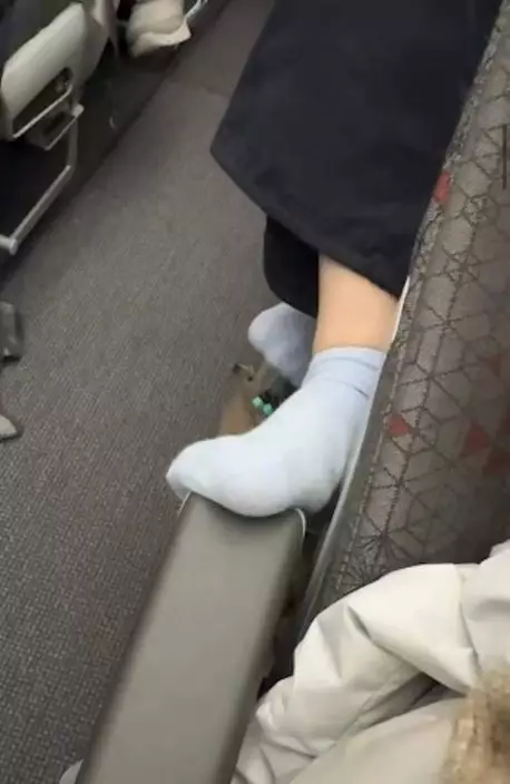 日前,台灣一名女事主在社交平台Threads發文分享一次不愉快的飛行經歷。她指,當日搭乘長榮航空一班長途航班期間,遭坐在後排的一名女乘客多次將雙腳伸前,直接晾放在座位扶手上。從事主上載的照片可見,一名相信為外籍的女乘客穿著襪子,將右腳擱在事主座位扶手上,即使事主舉起手機拍攝,對方仍露出一副不以為然的神情。
