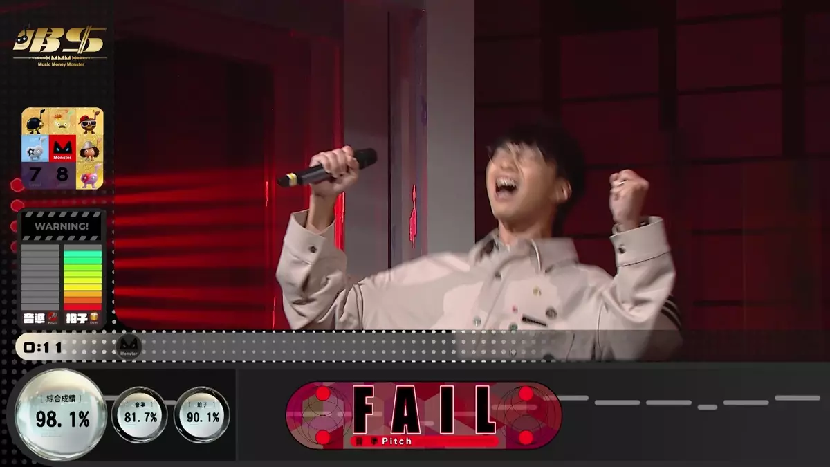 值得留意的是,1-8 Level的關數,挑戰者音準及拍子準確率需高於80%才算挑戰成功,Monster Level則需要音準及拍子準確率高於90%!100%完美過關者,可即時額外獲得HK$1,000獎金,但若挑戰失敗,所有獎金將即時歸零。為增加刺激感,節目還設有音準及拍子「血量表」、黃色警告區及紅色危險區。
