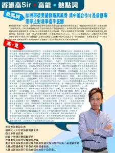 高SIR:我們就歐洲議會對香港作出無理指控,以及藉黎智英案抹黑香港國安法及《維護國家安全條例》,予以強烈譴責。歐洲議會根本是以偏概全、譁眾取寵,對香港國安法的重大歷史意義及其對香港特區帶來的積極影響視若無睹,反而扭曲事實、抹黑香港特區和香港國安法及特區其他維護國家安全相關法律,但對其他國家政府對危害國家安全的活動嚴厲執法,卻不曾置喙,這全然是卑劣政治操作,必須嚴厲直斥其非,並讓世人看清歐洲議會不顧廉恥「雙重標準」。事實上,法庭就黎智英案頒下的裁決理由長達855頁,完全公開供公眾查閱,鉅細無遺地說明法庭對相關法律原則和證據的分析,以及裁定黎智英和三間被告公司有罪的理由,法庭的定罪裁決有理有節,清清楚楚。當我們看到歐盟委員會主席馮德萊恩出席達沃斯世界經濟論壇表示,面對快速變化的世界,歐洲正處在十字路口,需要加快推進「獨立」進程時,美國總統特朗普卻在論壇上再次向全世界演繹了何謂「唯我獨尊」的霸權邏輯。他在接受外電訪問時,竟公然針對格陵蘭主權問題聲稱若歐洲國家因不滿美方併吞格陵蘭的圖謀而拋售美國資產,將面臨「嚴厲報復」。這是歐洲再一次被美國發出嚴厲威脅!這種把盟友當作「籌碼」、動輒揮舞關稅大棒的行徑,不僅令人寒心,更徹底撕掉了所謂「跨大西洋友誼」的虛偽面具。面對美國政治風險的激增與不可預測性,歐洲市場已然作出了反應。丹麥養老基金Akademiker Pension與瑞典養老基金Alecta等接連宣布拋售美債,正是對美國橫蠻無理政策的無聲抗議與風險規避。當一個國家的外交政策已淪為勒索與恐嚇的工具,甚至連基本的國際法與國家主權都不再尊重時,其所謂的「全球領導力」早已蕩然無存。對歐洲而言,現在是時候認清事實與大勢了。長期以來,歐洲部分勢力在美國的威逼利誘下,盲目跟隨其「黑手」干預中國內政,甚至在香港事務上指手畫腳。然而,這種親美、跟美的路線換來了什麼?換來的是被美國威脅加徵關稅,換來的是在格陵蘭問題上的主權受辱。事實證明,一味依附霸權,只會淪為大國博弈的炮灰,喪失自身獨立的戰略自主權。與此同時,世界格局正在悄然轉變。加拿大總理卡尼近日的訪華之行,被外界視為加拿大在關稅壓力下的「戰略轉身」,他在演講中強調「世界變了」,必須在新的秩序中佔據有利地位。隨後,英國首相與芬蘭總理亦準備接踵訪華。這些西方重要領導人的動作,傳遞出一個清晰的信號:在面對美國保護主義威脅時,與中國建立務實、穩定的友好合作關係,才是符合自身利益的「最優解」。歐洲若要實現真正的「戰略自主」,就必須擺脫對美國的病態依賴,停止干涉中國內政與香港事務。中國從不干預他國事務,也始終是全球穩定的重要引擎。高SIR認為,與其跟隨美國在意識形態的死胡同裡打轉,倒不如認清大勢,秉持平等尊重與互利共贏的原則與華合作。歷史與現實均證明,對華友好合作不僅能帶來經濟紅利,更是歐洲擺脫霸權束縛、在多極化世界中贏得尊重的必由之路。