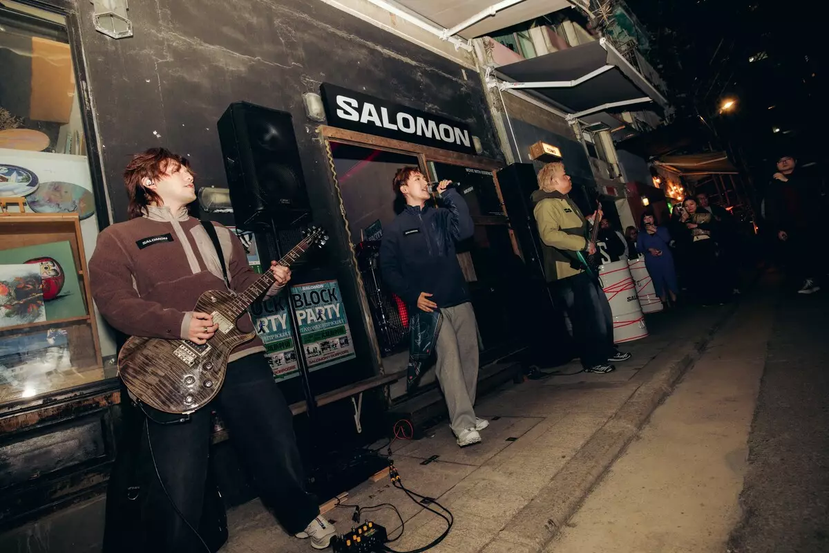 法國戶外運動品牌SALOMON於1月23日,假大坑新村街舉辦SALOMON BLOCK PARTY,邀請了人氣樂隊Zpecial現場表演,多位藝人及「門徒」亦到場支持,場面熱鬧。