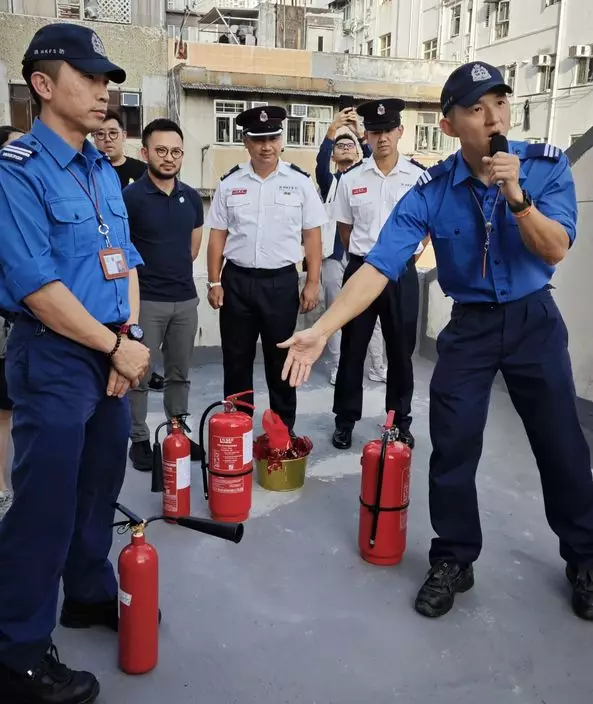 消防處去年3月成立4隊分區公眾安全隊,主動巡查高風險樓宇。圖為分區公眾安全隊(九龍西)去年11月在深水埗區舉行「大廈消防安全實戰工作坊」。消防處FB圖片