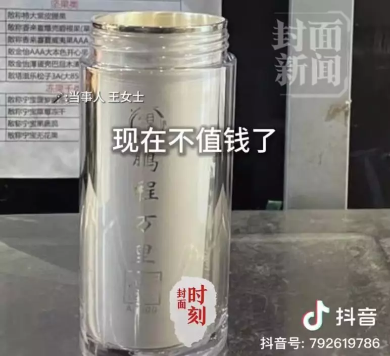 綜合內媒報導,四川成都簡陽市一名女子於3年前在當地一間珠寶店購買鑽戒時,適逢商戶推出「消費滿額贈足銀保溫杯」的促銷活動。當時,她花費約6200元(人民幣,下同,約7000港元)購入一枚鑽戒,並獲贈一個標示為「足銀999」的保溫杯。當時,她並未特別留意該贈品,保溫杯多年來也一直未曾拆封,閒置於家中儲物間。