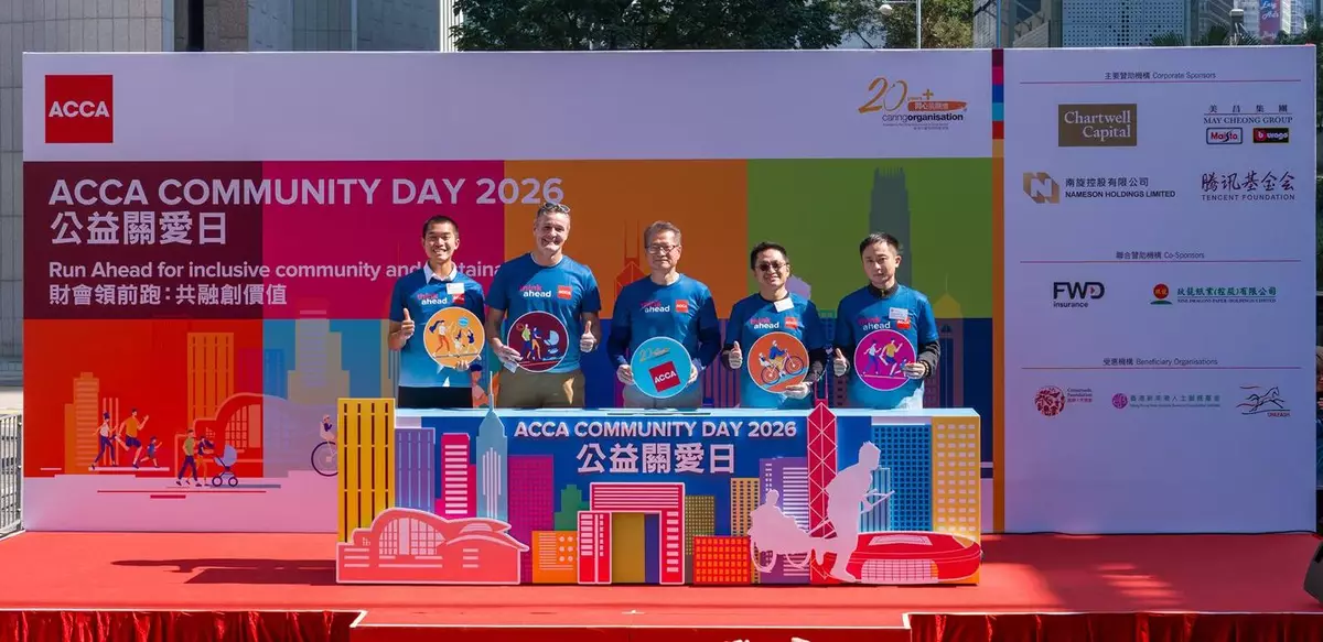 ACCA(特許公認會計師公會)香港分會25日於中環遮打道行人專用區舉行2026「ACCA公益關愛日」,以「財會領前跑:共融創價值」為主題,寓意財會專才以專業和領先精神,推動企業實踐社會責任,一同創造包容、可持續發展的未來。