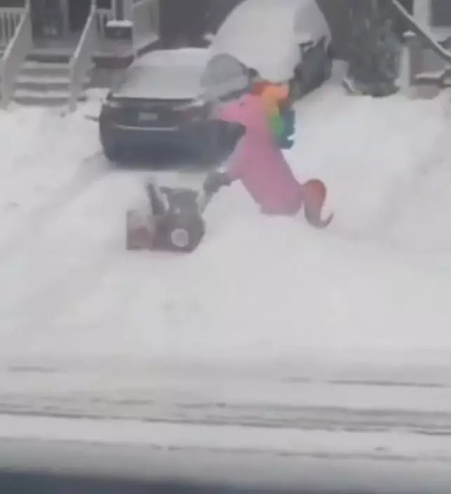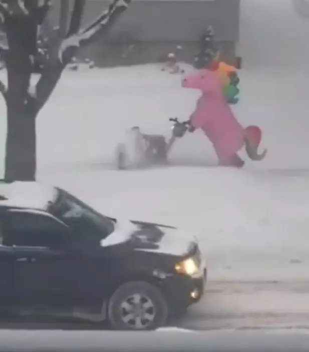 綜合外媒報導,國外社交平台上瘋傳一段趣味影片,顯示在歐美地區的某個社區內,一名男子身穿卡通人物「彩虹小馬」造型服裝,推著鏟雪車在戶外協助清理積雪,充滿童趣的畫面被鄰居拍下並上載至網絡,迅速引起網民關注及熱烈討論。