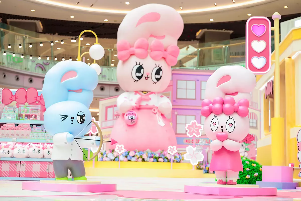 Esther Bunny 家族角色,包括:一身粉紅色戴有標誌性粉紅蝴蝶結的 Ribbon Bunny;炫酷時尚的薰衣草色 Lavender Bunny;奶油般純白的 Cream Bunny 及一身毛色粉藍的 Blue Bunny,將親臨 MCP 新都城中心。Esther Bunny 外型如棉花糖軟萌,配以一對修長大耳及帶長睫毛的閃亮眼睛,以甜美溫暖的可愛魅力,瞬間誘發你的少女心!Esther Bunny 將帶大家遊遍6大打卡場景及互動玩樂區,等待 MZ 世代親臨解鎖更多驚喜!