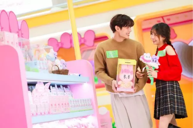 吸睛亮點之一,Blue Bunny 向 Ribbon Bunny 發放專屬愛心箭,箭矢伴隨心形光芒,象徵著愛情與幸福的降臨。無論是情侶、閨蜜或家人,都能在此定格最歡樂、最浪漫的一刻。