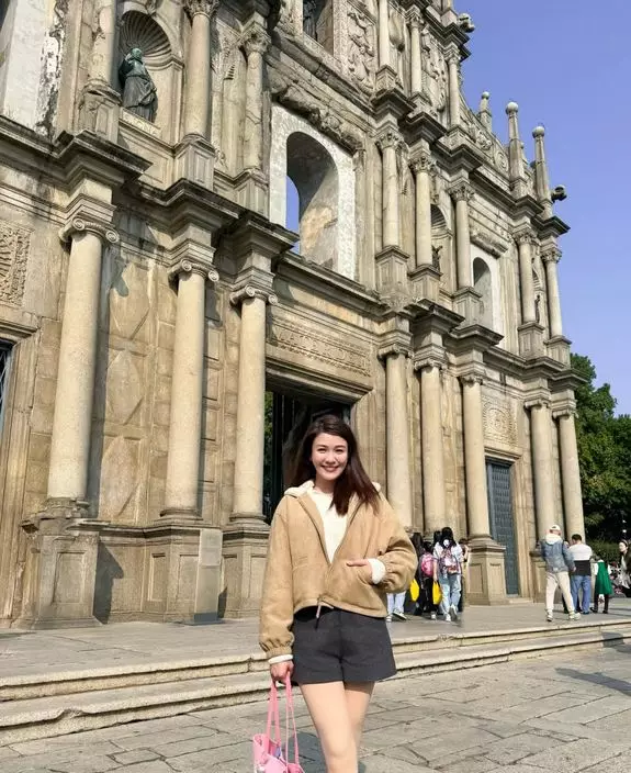 近日天氣寒冷,雖然相中江嘉敏短褲上陣大晒美腿,但看膚色似乎是著了「光腿神器」,做足保暖措施的她興奮的在澳門各地標打卡留念,而且病癒後的她胃口大開,飲了著名的樽仔奶茶,又大歎炒通粉、需糕三文治,食得相常滿足!