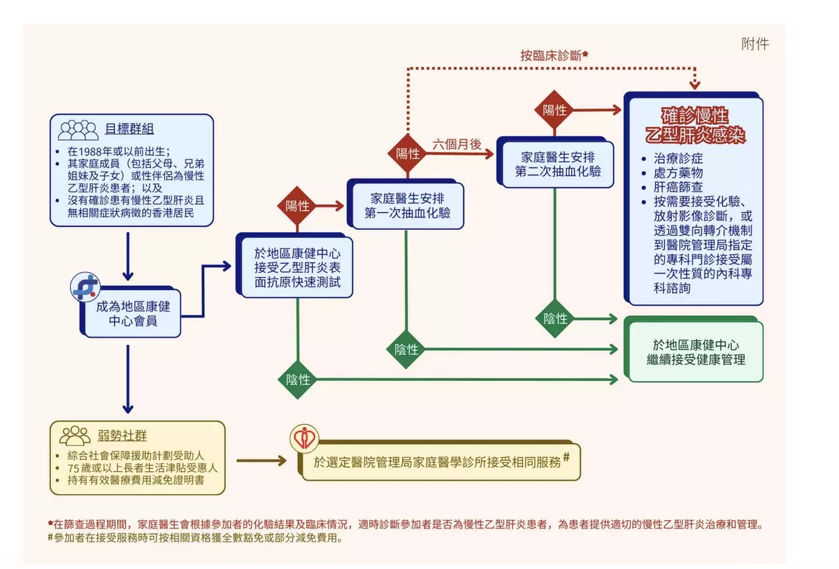 局方表示,計劃是期望可以早識別社區中的慢性乙型肝炎患者並長期跟進,而減低他們肝硬化和肝癌等嚴重併發症的風險。