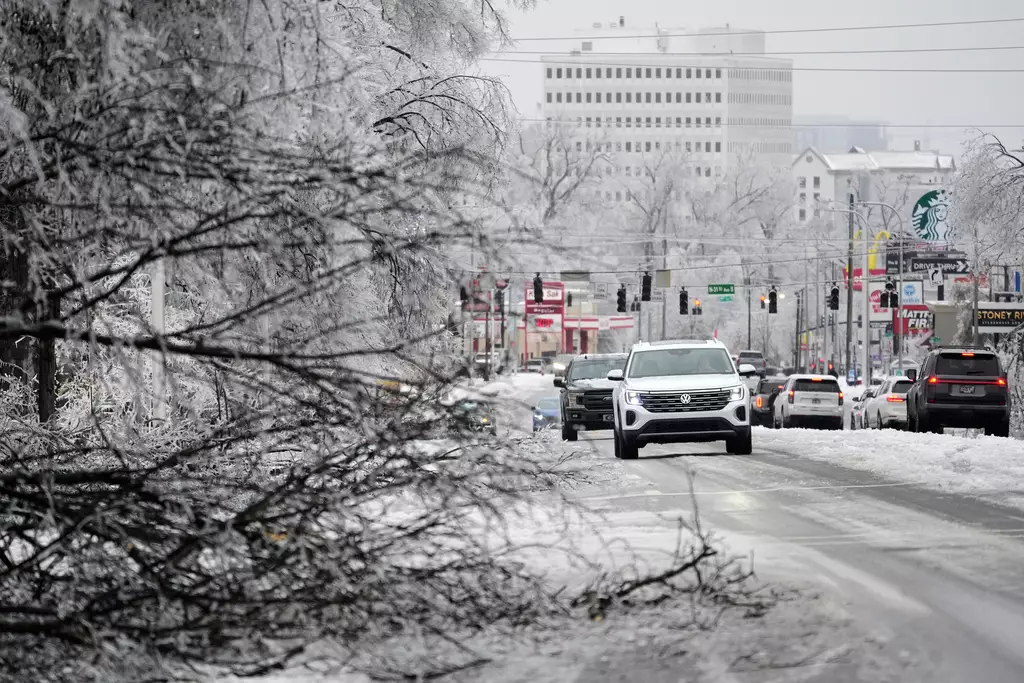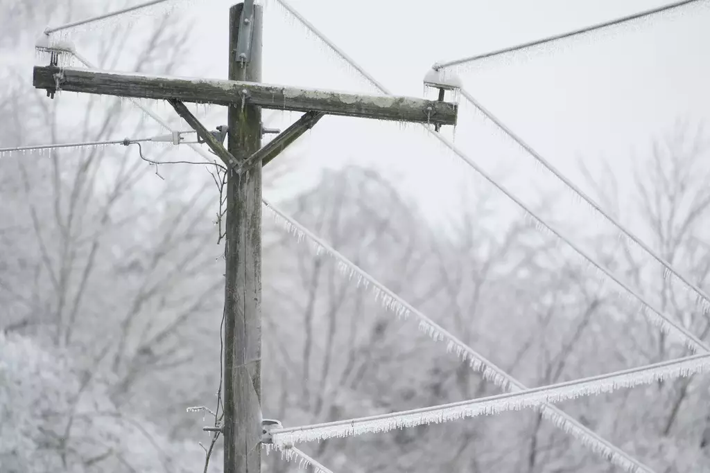 美國全國多處持續受大規模冬季風暴吹襲,滴水成冰。AP圖片