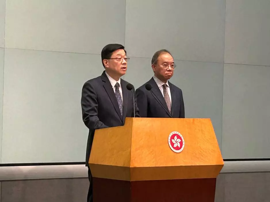 特首李家超星期二(1月27日)出席行政會議前見傳媒。李家超在曾國衞陪同下現身記者會。李家超指,曾國衞是以健康理由辭去職務。