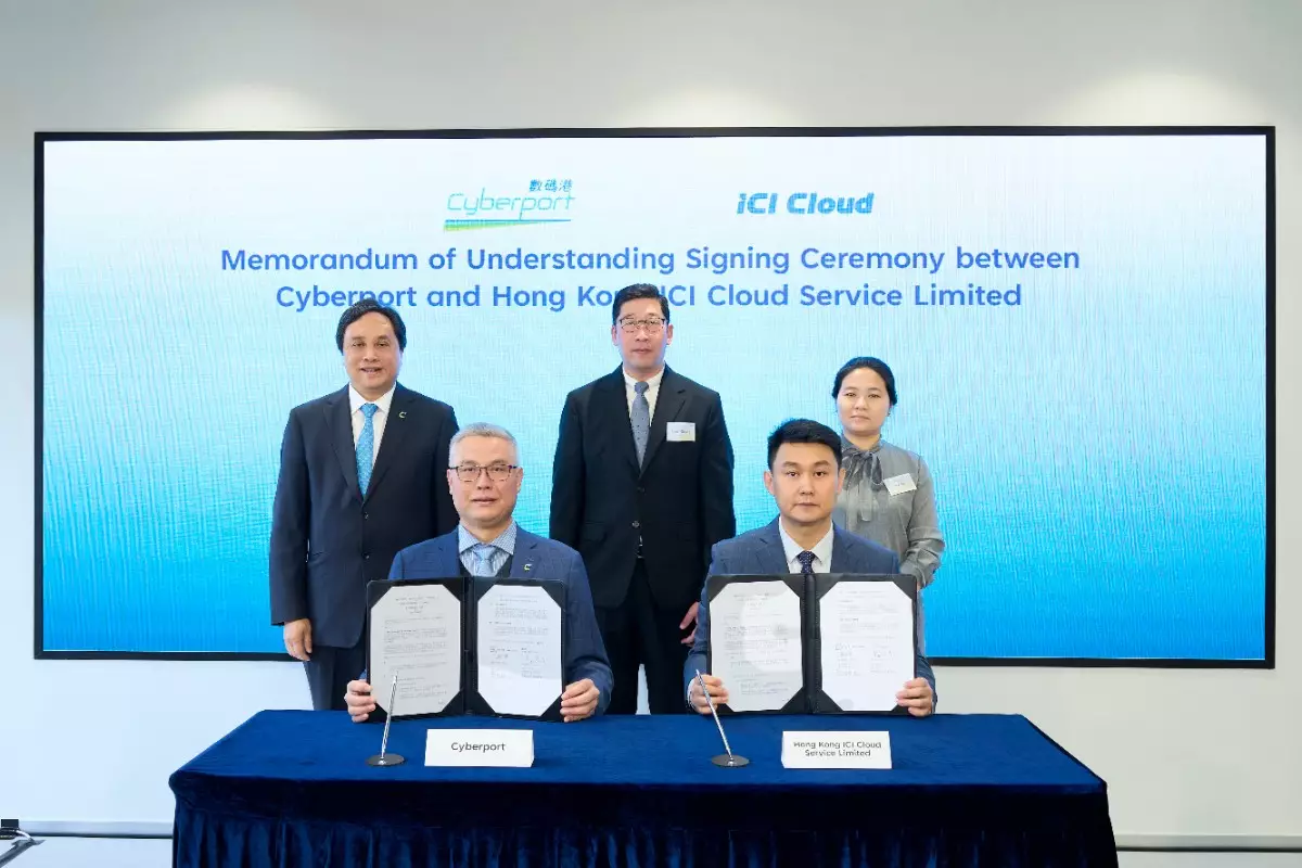 合作備忘錄簽署儀式由數字政策辦公室副數字政策專員(數字基建)張宜偉、數碼港主席陳細明及ICI Cloud董事長尹萍出席見證,並由數碼港行政總裁鄭松岩博士與ICI Cloud總經理邢子澤簽署。