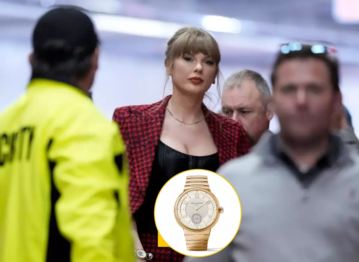 美國流行音樂天后泰勒絲戴著Tambour金色腕表。AP資料圖片