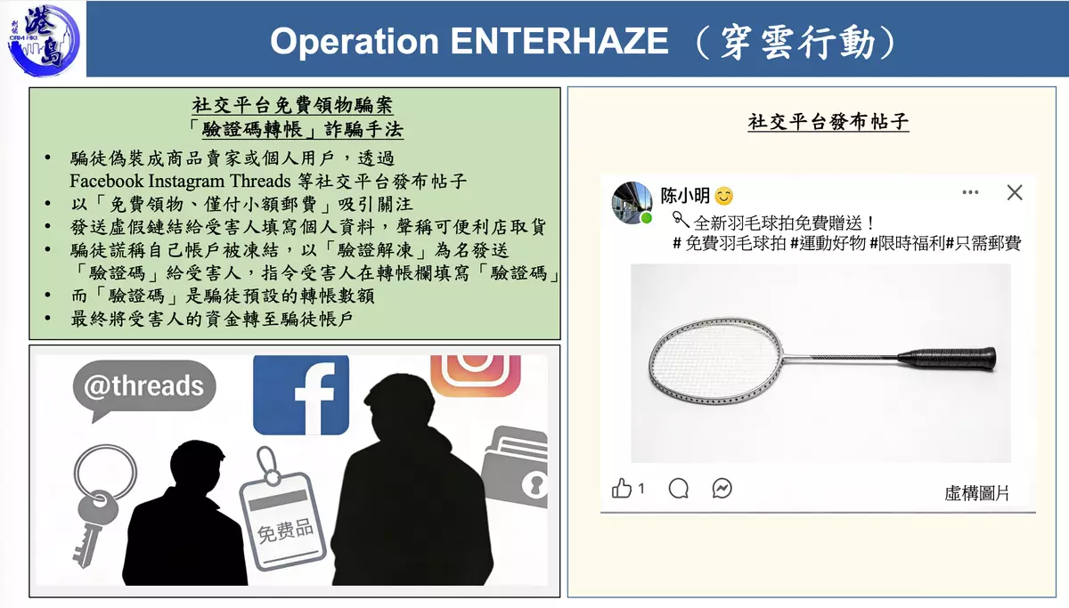 同樣以「填入虛假驗證碼轉帳」為核心套路的騙案,近期出現了變種個案,當中不乏針對社交平台用戶的作案手法,不論是買家還是賣家均有受害情況。例如,有騙徒偽裝成商品賣家或個人用戶,透過社交平台發布帖文、福利資訊,聲稱可免費領取二手物品或其他各類產品,無需支付購買費用,僅需支付小額郵費給騙徒即可送達,以此吸引市民主動諮詢溝通。騙徒與市民達成「送貨共識」後,會發送虛假的郵寄資料填寫鏈結,聲稱市民填寫個人資料並繳交小額郵費後,便可到就近便利店取貨。待市民完成資料提交後,騙徒立即編造「騙徒自己的銀行帳戶被凍結,需買家協助驗證才能支付郵費」的藉口,並將溝通渠道轉移至自稱「專屬客服」的對接方式提供協助。其後,騙徒會陸續提供多個聲稱自己的帳戶,同時發送所謂「驗證碼」,要求市民登錄個人網上理財帳戶,將該「驗證碼」填入指定的轉帳欄以完成「解凍驗證」。市民按要求操作後才察覺,該輸入欄實際是轉帳金額欄,所謂「驗證碼」即是轉帳數額,資金已被騙徒轉走,此時再聯繫對方已銷聲匿跡。