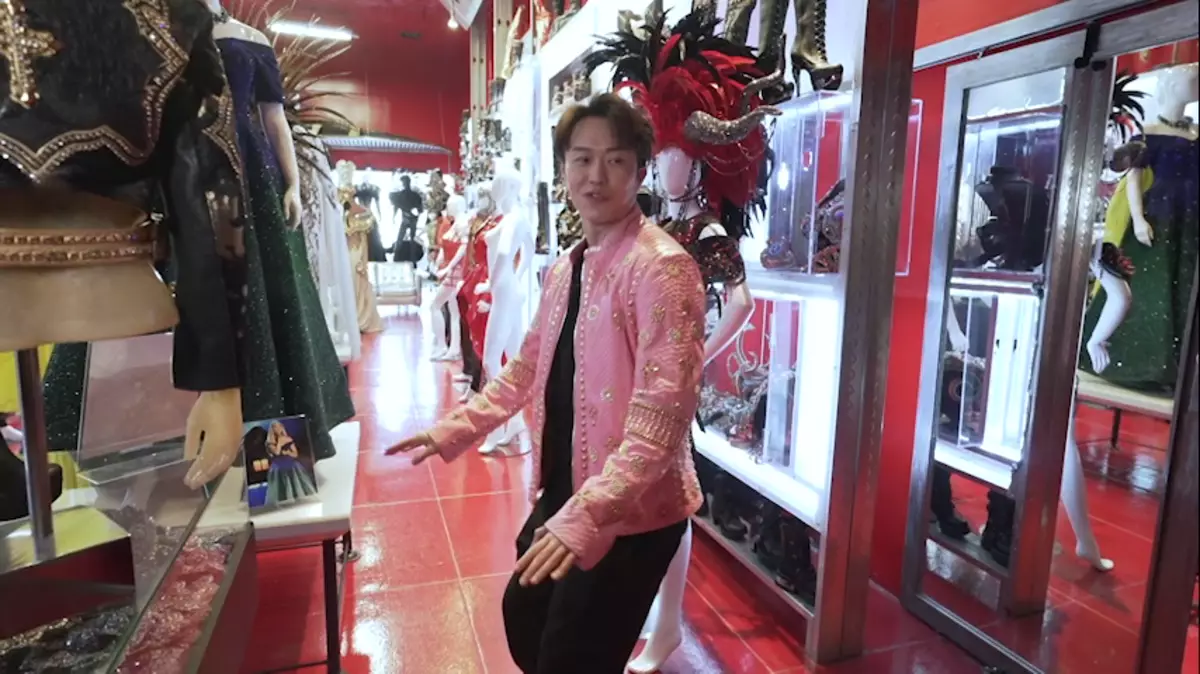 真人騷豪華旅遊節目《奢遊記》昨晚(1月26日)劉晨芝(Adrienne)首站帶鄭衍峰認識荷李活巨星時裝設計師Jacob Meir,他先後為Katy Perry、Britney Spear、Jennifer Lopez設計舞台服飾。店內放滿他跟各巨星的合照及登台衫。鄭衍峰玩得最開心,不停變裝試衫,更幻想自己草蜢上身,對住鏡頭又跳又唱《忘情森巴舞》,非常投入。