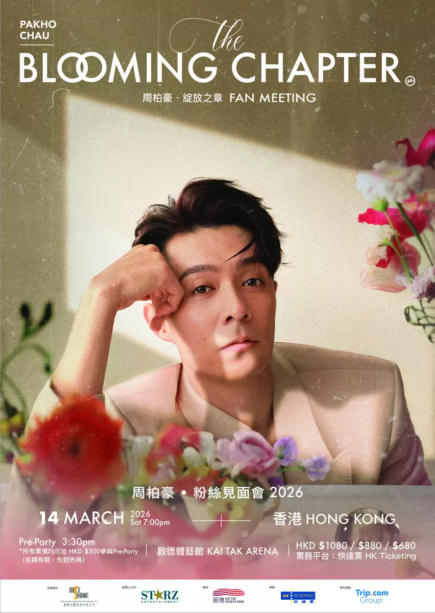 周柏豪正式宣佈,其全新個人音樂見面會《周柏豪THE BLOOMING CHAPTER》將於2026年3月14日白色情人節,首站選在香港啓德體藝館隆重舉行。