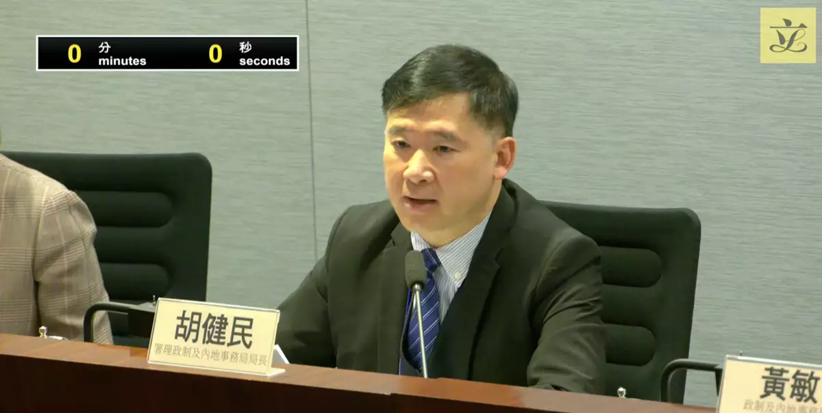 署理政制及內地事務局局長胡健民。立法會直播截圖