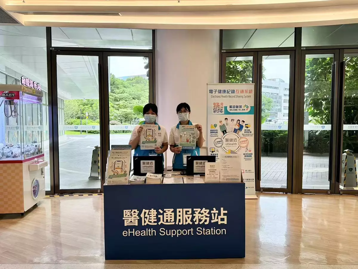 香港醫衛局於深圳新風和睦家醫院內設立支持站,協助香港市民登記醫健通、下載醫健通流動應用程式及使用相關功能。