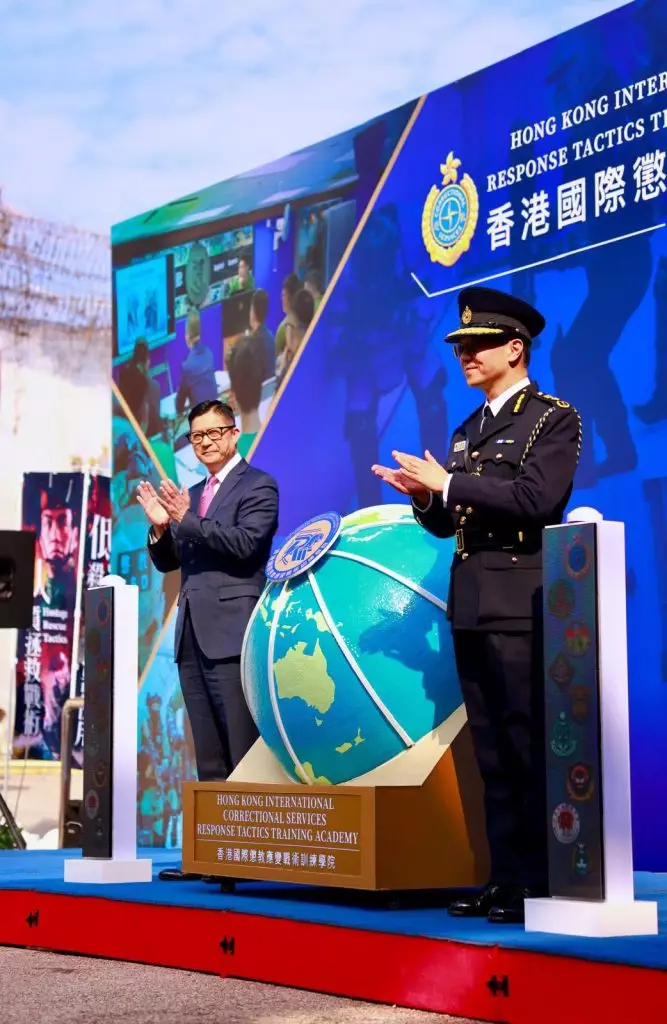 保安局局長鄧炳強27日出席「香港國際懲教應變戰術訓練學院」開幕典禮,他在社交平台介紹,學院前身是歌連臣角懲教所,從圍牆「更生」成為一所國際戰術交流同訓練基地,意義深遠。