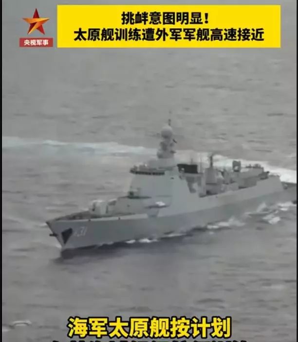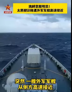 突發警情!外軍艦艇突然從側方高速切入,試圖干擾太原艦正常航行軌跡。