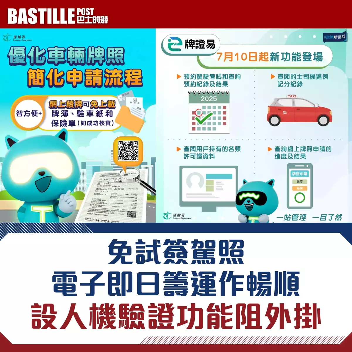 運輸署:免試簽駕照「電子即日籌」系統運作暢順 設人機驗證功能阻外掛