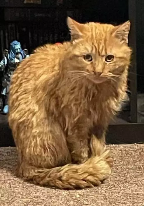 夫婦憶述,「可憐的小傢伙暴風雪時一直在我們家門前大叫,結果牠很快就舒服地待在屋中。」照片可見,該隻橘貓當時全身毛髮濕透,神情疲憊,顯然已在寒風中逗留多時,之後獲安排在室內休息,很快便沉沉睡去。