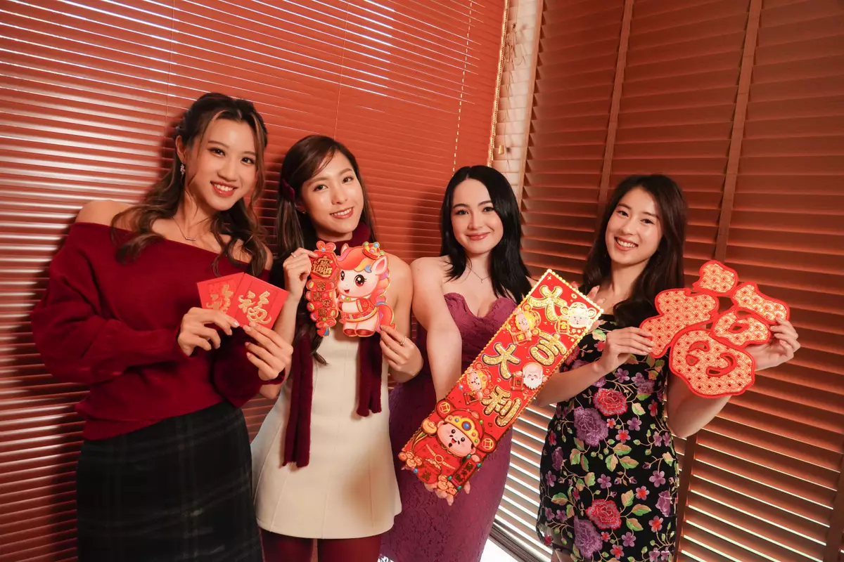 應屆港姐甘詠寧(Phoebe)、朱文慧(Teresa)、何詠多(Alison)及梁倩萱(Barbie)向《巴士的報》讀者送上新年祝福。(攝影:inmhypointofview@IG)