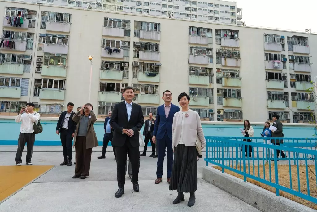 何永賢在社交平台上表示,他們一行實地參觀了彩興簡約公屋,了解這個打破香港高層建築興建速度紀錄的項目,如何為基層市民提供改變生活的機會。除了聽取建築團隊分享技術,大家也沿路看到項目內的社福支援,並上到單位了解相關配置,看看如何簡約但實際地支援市民所需。