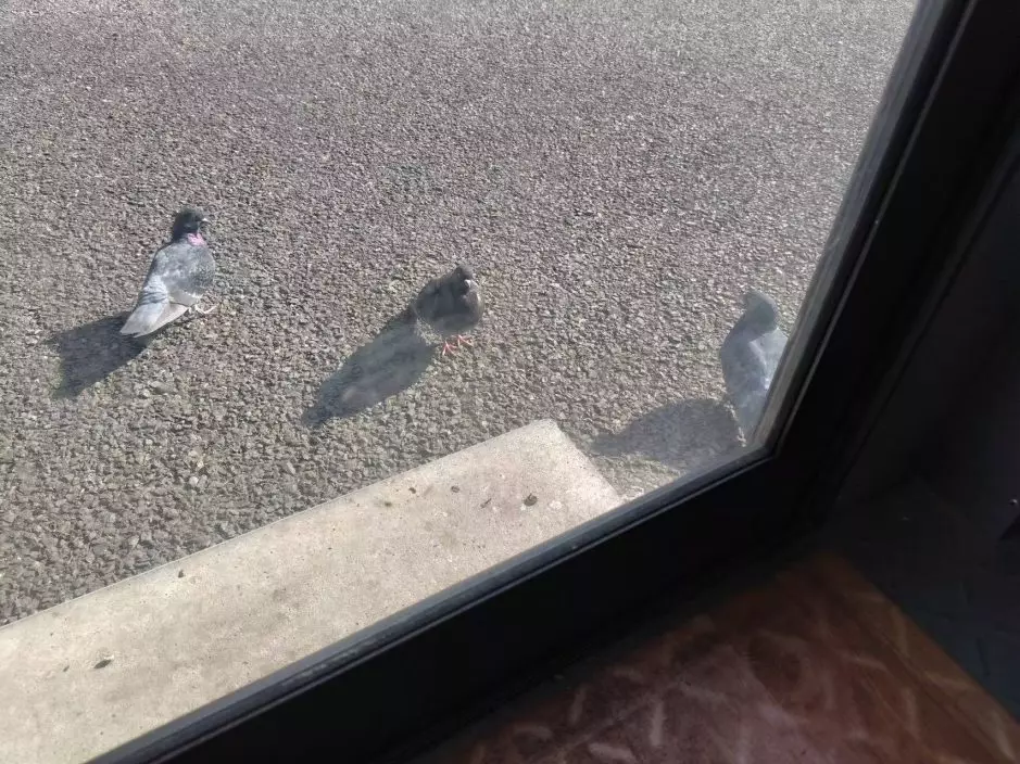 3鴿子守門等開餐 似收到通知般聚集