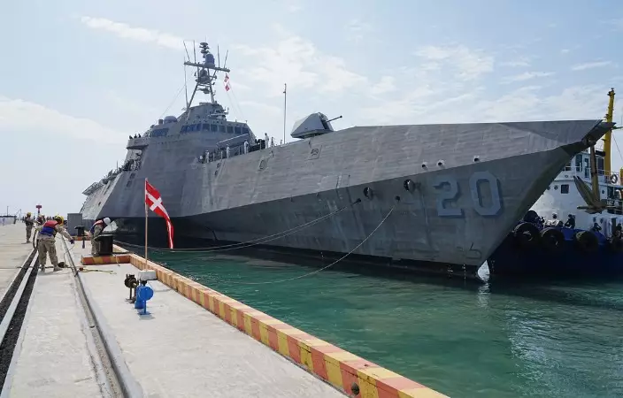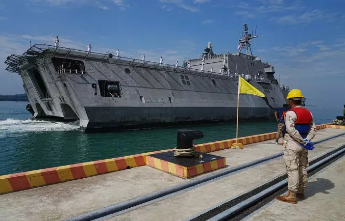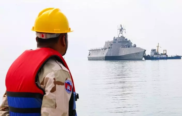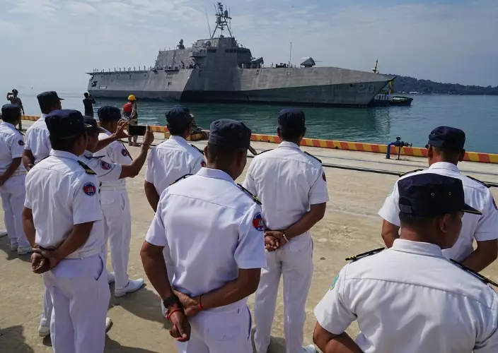 美軍「獨立」級瀕海戰鬥艦「辛辛那提」號,抵達柬埔寨雲壤海軍基地,進行為期五天的訪問。