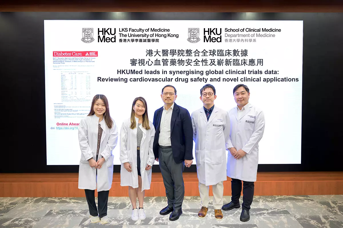 香港大學李嘉誠醫學院(港大醫學院)臨床醫學學院內科學系領導的研究團隊,近日完成多項針對新興心臟及代謝藥物的全球臨床試驗數據統合分析,深入探討 GLP-1 受體促效劑的安全性及其在心血管治療中的嶄新潛力。研究發現 GLP-1 受體促效劑與缺血性視神經病變風險並無顯著關聯,研究亦發現有肥胖問題的心臟病患者透過多元化減重措施,並配合適當藥物,或可提升心房顫動導管消融手術的長期成功率。研究結果將協助前線臨床醫生更全面評估病人用藥的潛在風險與效益。