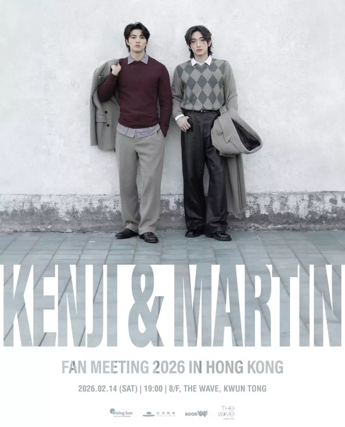 向來「男女通殺」的型男范麒智(Kenji)與王智騫(Martin), 去年憑主演台灣BL劇《靈魂約定》人氣大增,不僅其社交群組激增五位數粉絲,更吸引不少品牌客追捧,日前二人就宣布於情人節舉行、由光尚娛樂主辦的《Kenji & Martin Fan Meeting 2026 in Hong Kong》,將帶著久違的興奮與感動回到香港舞台,與粉絲再次相聚,大派福利!