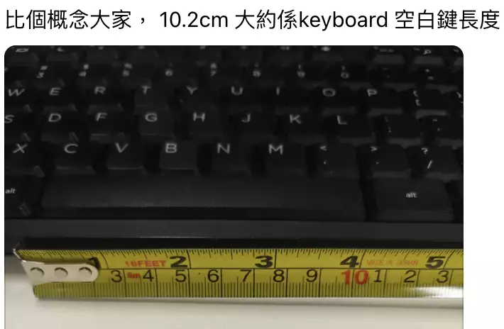 有網民指,10.2cm大約係keyboard(鍵盤)空白鍵長度。Threads截圖