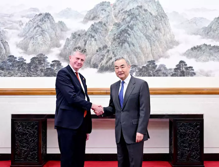 中共中央政治局委員、中央外辦主任王毅,在北京會見英國首相國家安全事務顧問鮑威爾。