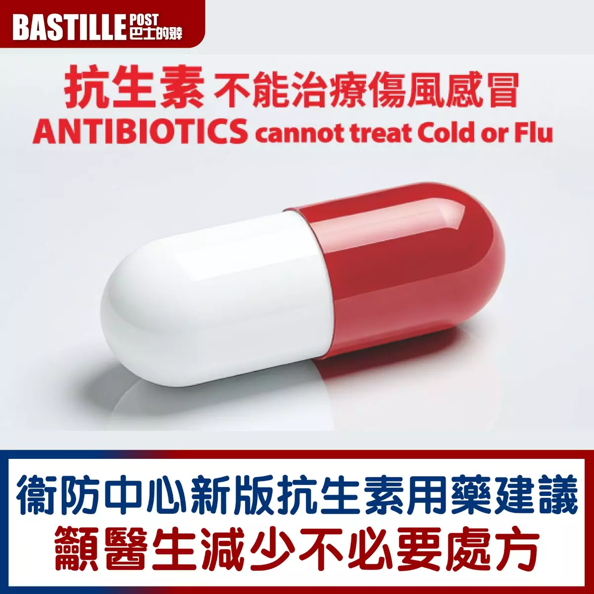 衞生防護中心發布新版《社區醫療抗生素用藥建議》,呼籲醫生為病人處方抗生素時參考相關建議,減少不必要處方。