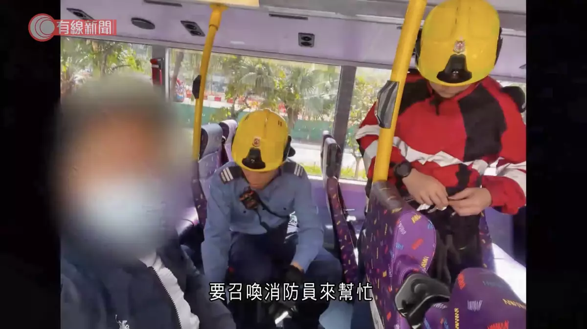 巴士男乘客因解不開安全帶被困,最後由消防員協助脫困。有線新聞截圖