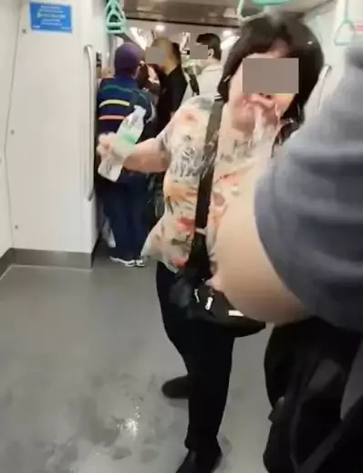 婦人地鐵車廂朝乘客噴水