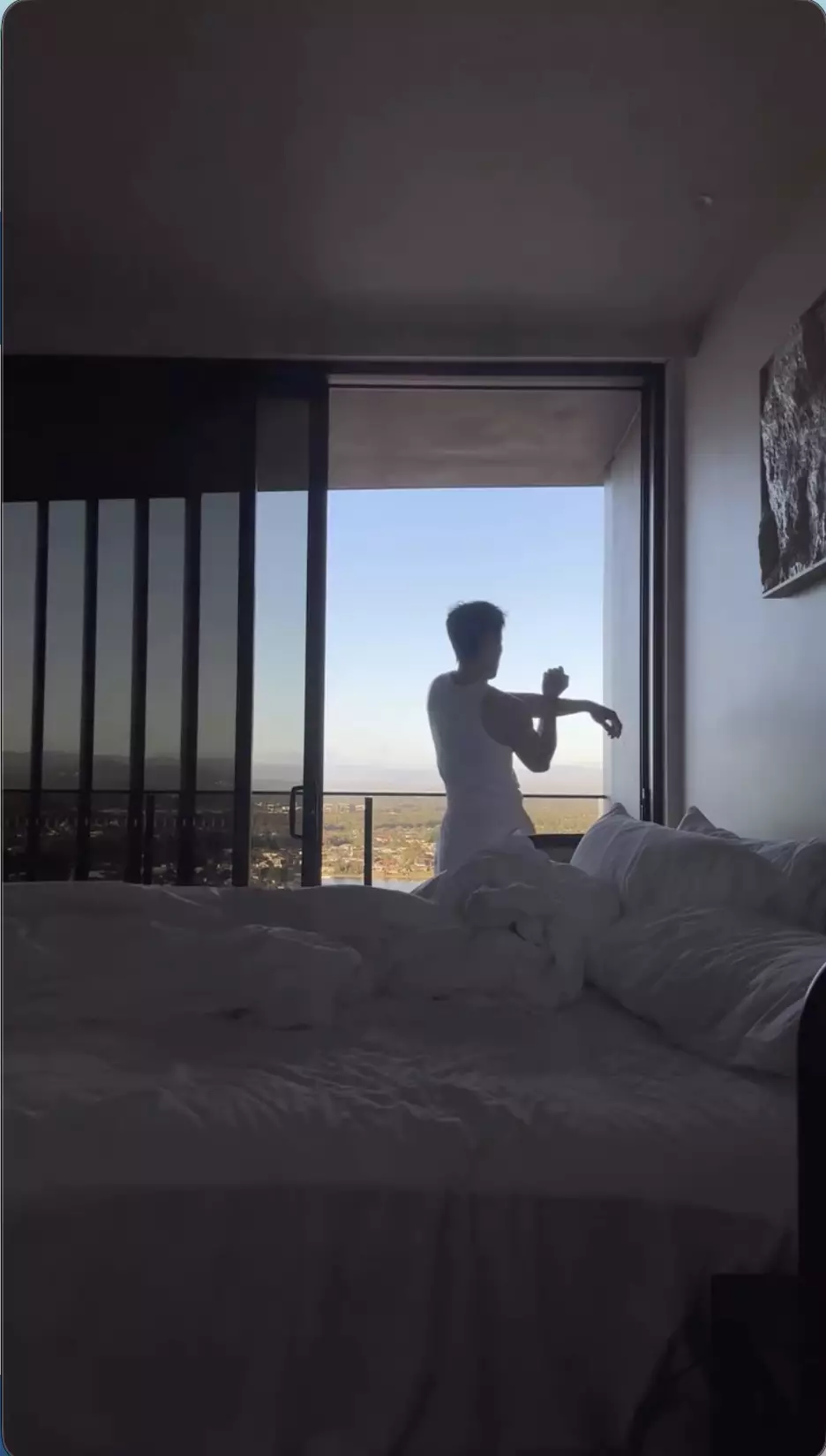 炫富風波後,丁子朗心情似乎並未受太大影響,抵到達布里斯班後,他在IG曬出自己在酒店房赤膊曬肌做運動的片段,力證自己足夠豁達,已經放下。