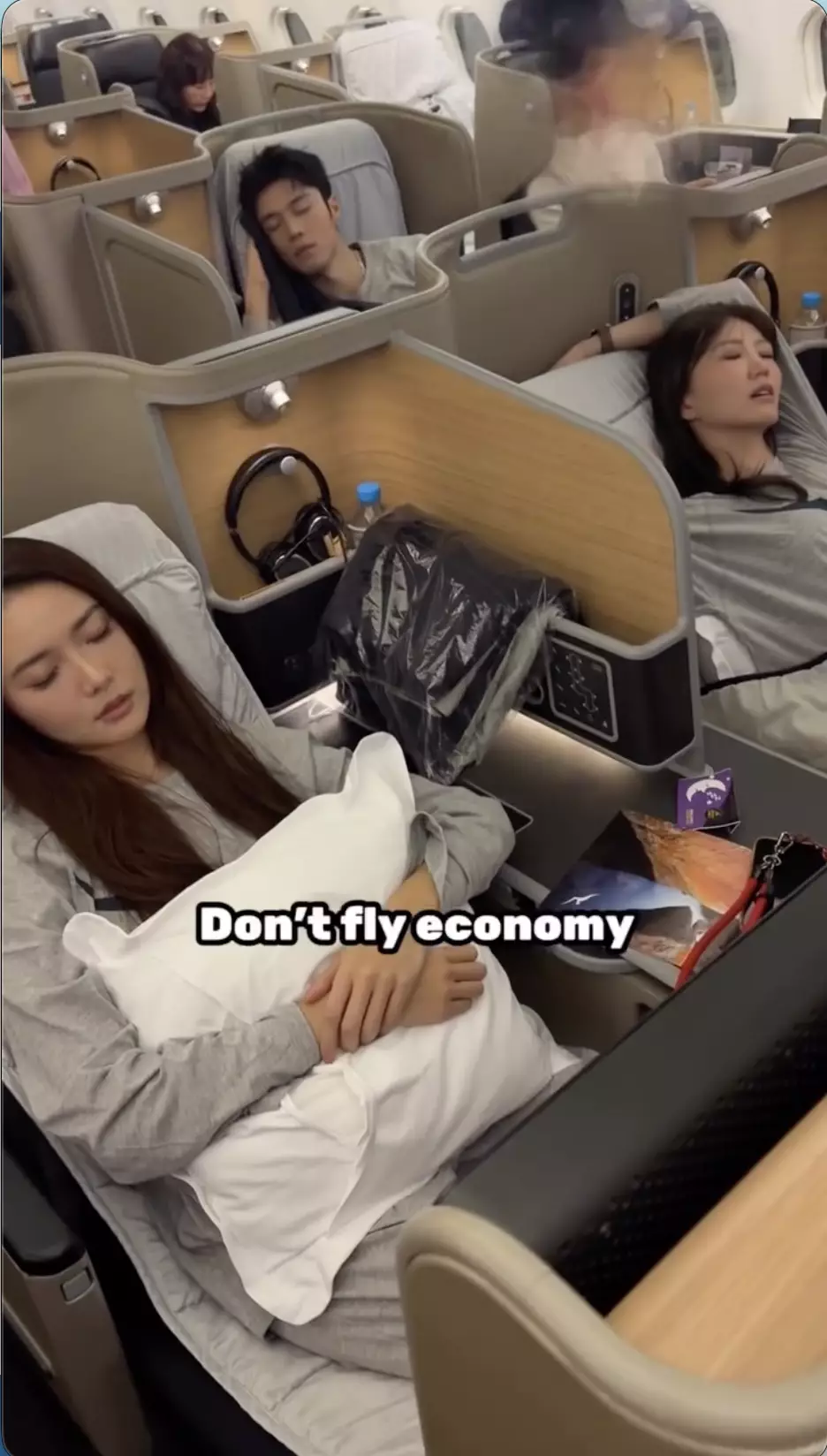TVB小生丁子朗早前同吳若希、戴祖儀飛澳洲拍節目《他們的澳洲駕期》,在網上分享一條「如何度過10小時的經濟艙?」的短片,片中的他顯得相當苦惱 ,不過鏡頭一轉三人已經在商務艙舒舒服服歎人生,更特別配上字幕勸告大家「不要坐經濟艙」。