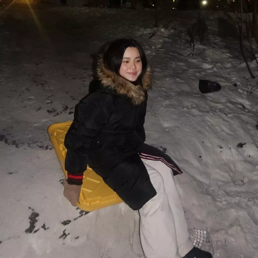 相中可見她身穿厚重外套,坐於雪地上嬉戲,笑容甜美,充滿活力。惟其鼻尖與面頰被凍至通紅,粉絲紛紛留言提醒她「保重身體,唔好冷親」、「着多件衫」,亦有人祝她享受冬日氣氛。