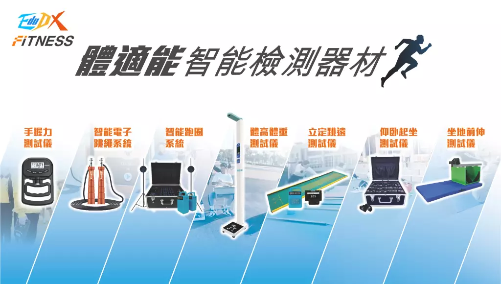 「EduDX Fitness」配合一系列體適能智能檢測器材,一小時內可完成100人體適能測試,精準數據助老師高效完成。
